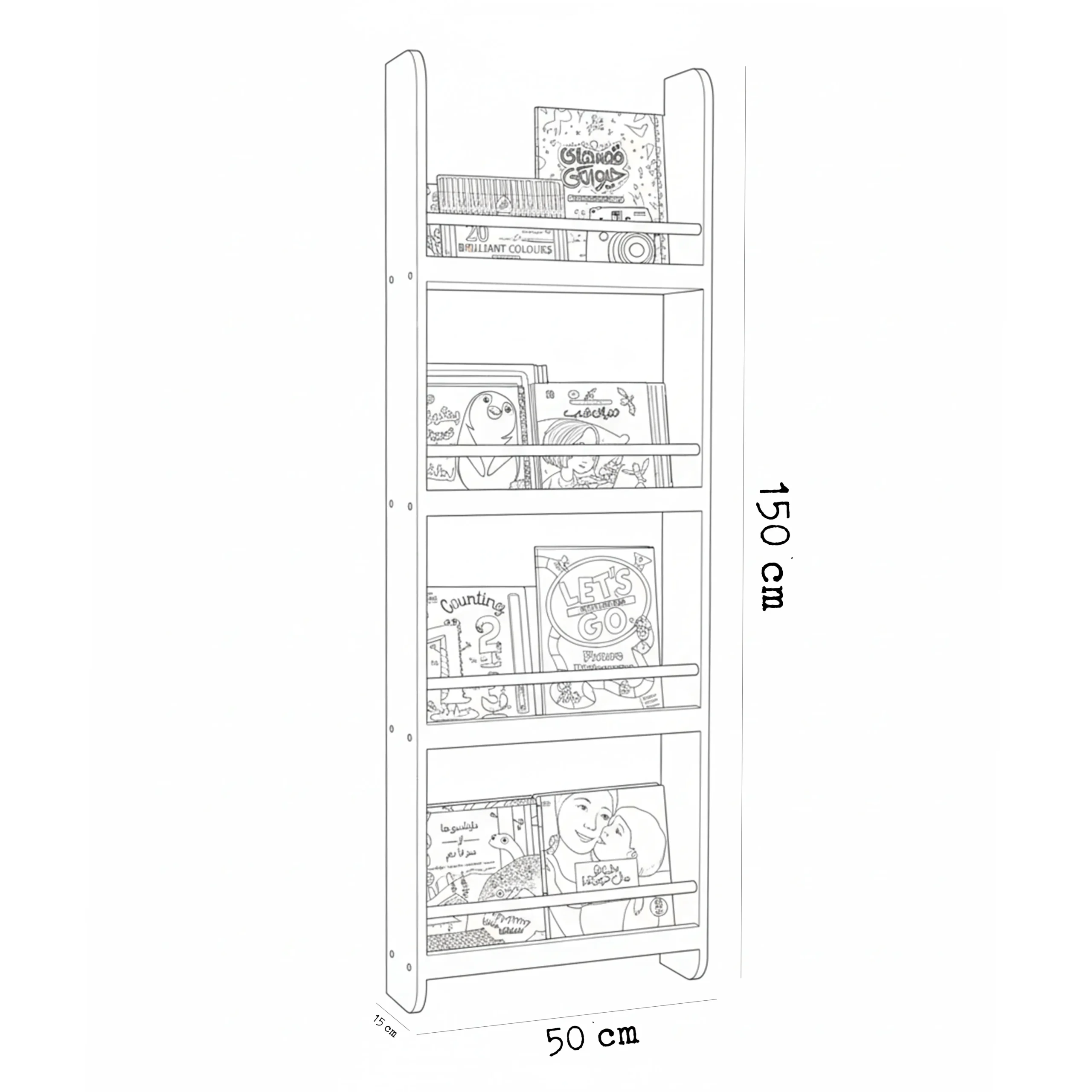 کتابدونی ها در رنگ سفید و میله های چوبی بصورت خودرنگ است.